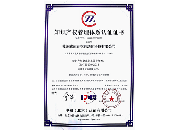 知識產(chǎn)權(quán)管理體系認(rèn)證證書